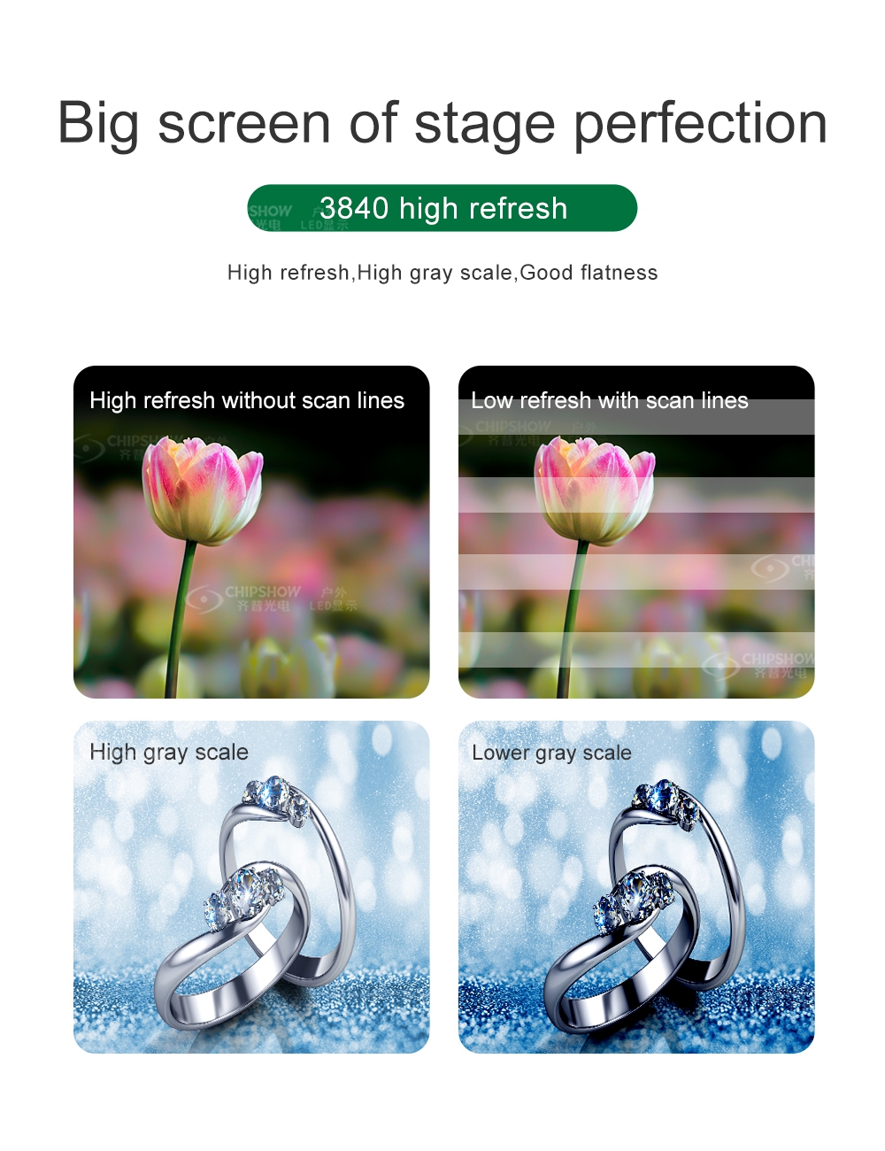 * Ideal para presentaciones en el escenario: con una alta frecuencia de actualización de 3840 Hz y una velocidad de obturación de 1/3000 s, captura sin líneas de escaneo ni efectos fantasma.