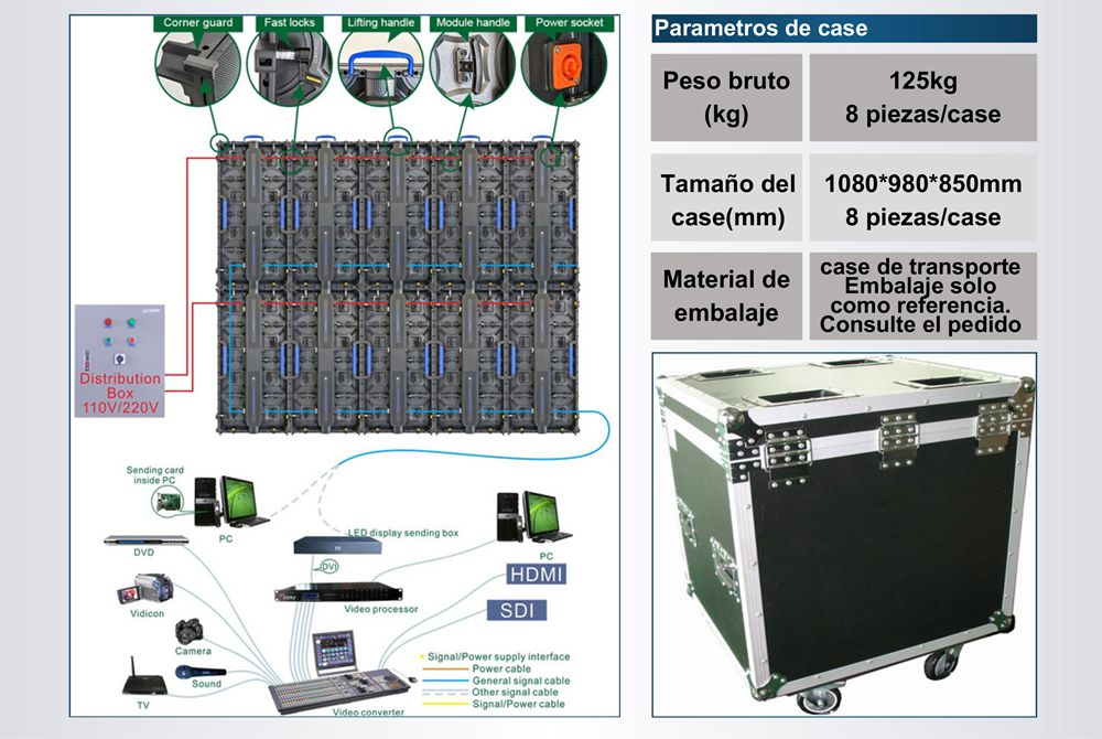 4. Alto rendimiento en relación calidad-precio: conexión de bloqueo rápido entre cajas; una pantalla se puede utilizar para múltiples propósitos y puede ser fija, apilable o izada;