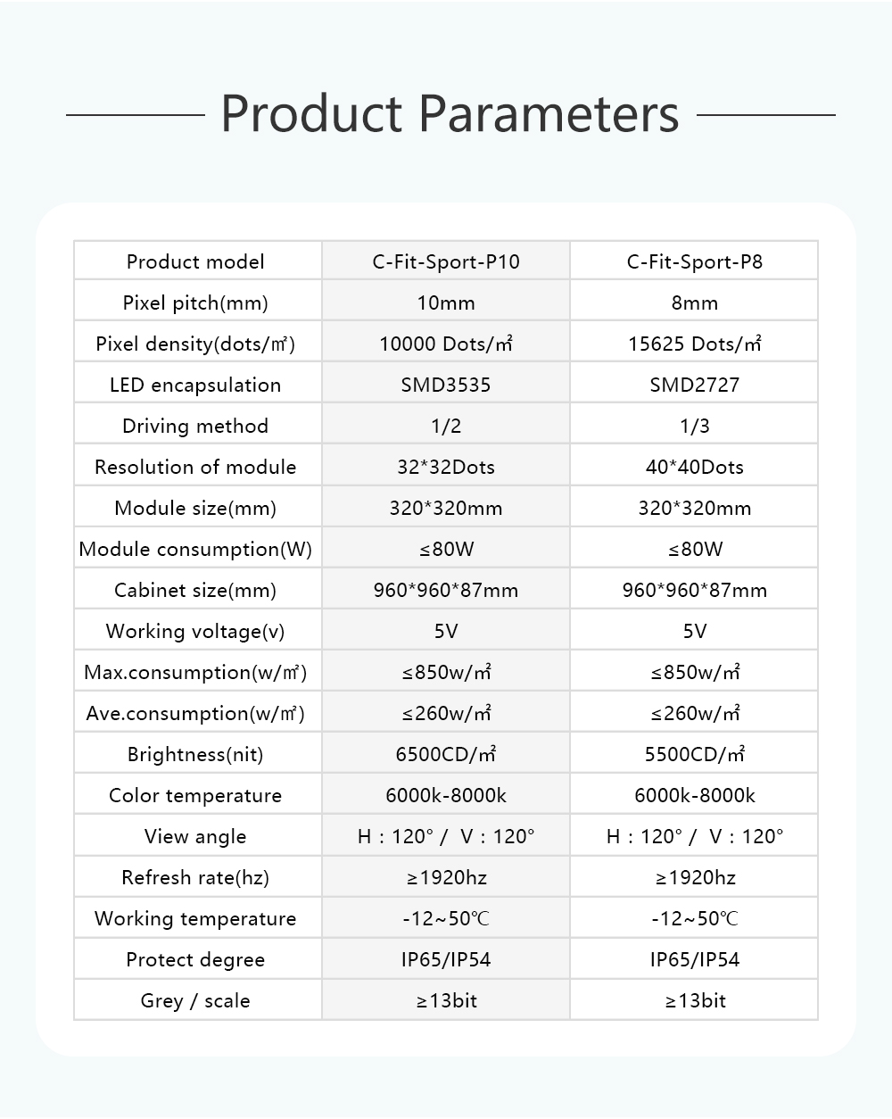 Pantalla LED montada en la pared C-Special para soportes del estadio (P8)Si está interesado en nuestros productos y desea conocer más detalles, deje un mensaje aquí, le responderemos lo antes posible.