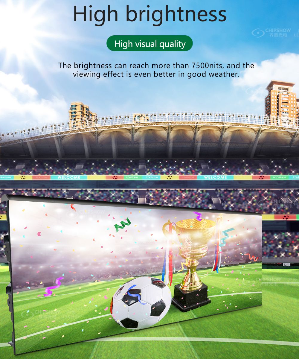 Las pantallas LED P8,P10 C-Fit-Sport adoptan tecnología de reemplazo virtual. Los anuncios virtuales podrían transmitirse a diferentes países en lugar de los anuncios reales en los estadios.