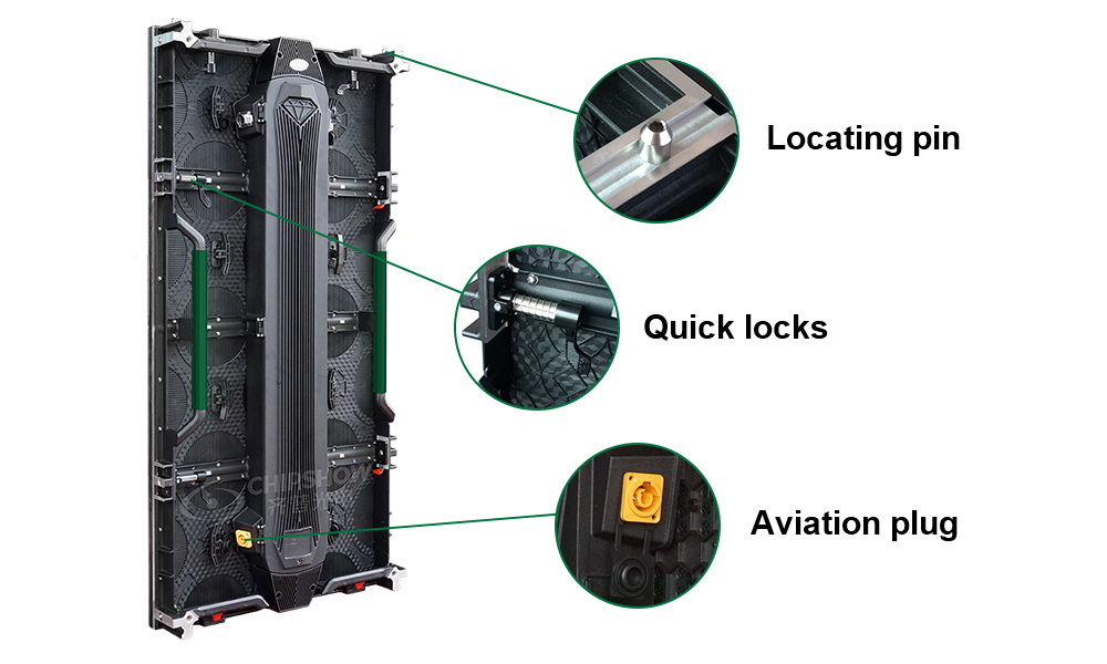 C-Lite-D es una pantalla LED de alquiler de alta gama para una variedad de actividades, su caja de control se puede cerrar mediante cerraduras y la almohadilla de protección evita que las lámparas en las esquinas se dañen, lo que le brindará una mejor experiencia en instalación y desmontaje. Características 1. Paso disponible: P2.6, P2.97, P3.91, P4.81 interior/exterior 2. Tamaño del gabinete: 500*500 mm/500*1000 mm 3. Brillo: 800~1000nit (interior), 4500~6500nit (exterior). 4. Fuente de alimentación integrada y tarjeta receptora. Enchúfelo y desconéctelo en 1 segundo. 5. Bloqueos rápidos de arriba a abajo, de izquierda a derecha, 2 segundos para conectar los gabinetes. 6. Aluminio fundido a presión, alta resistencia, alta tenacidad, alta precisión, planitud ultraalta, error de planitud de pantalla completa ≤ 0,01 mm. 7. Diseño anticolisión en la parte inferior del gabinete, colocando cuentas en el costado para una alineación precisa. 8. Buen diseño de disipación de calor, no necesita ventilador ni aire acondicionado, menos ruido durante el trabajo. 9. Alta protección, resistencia a la corrosión por intemperie y niebla salina. 10. Una variedad de métodos de instalación, pueden ser elevación, fijación y apilamiento.
