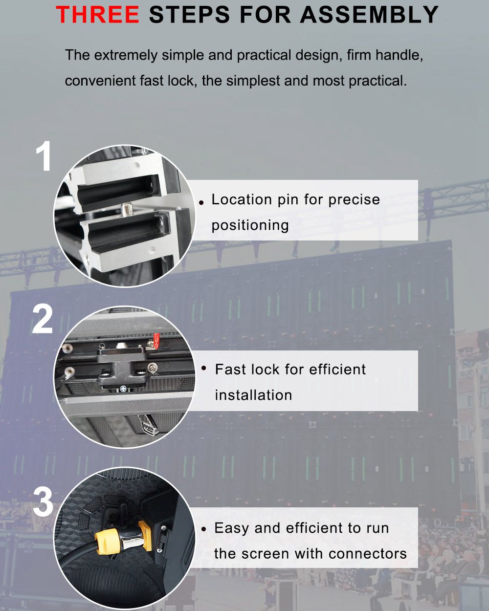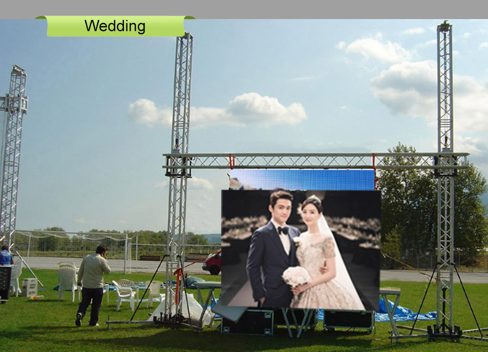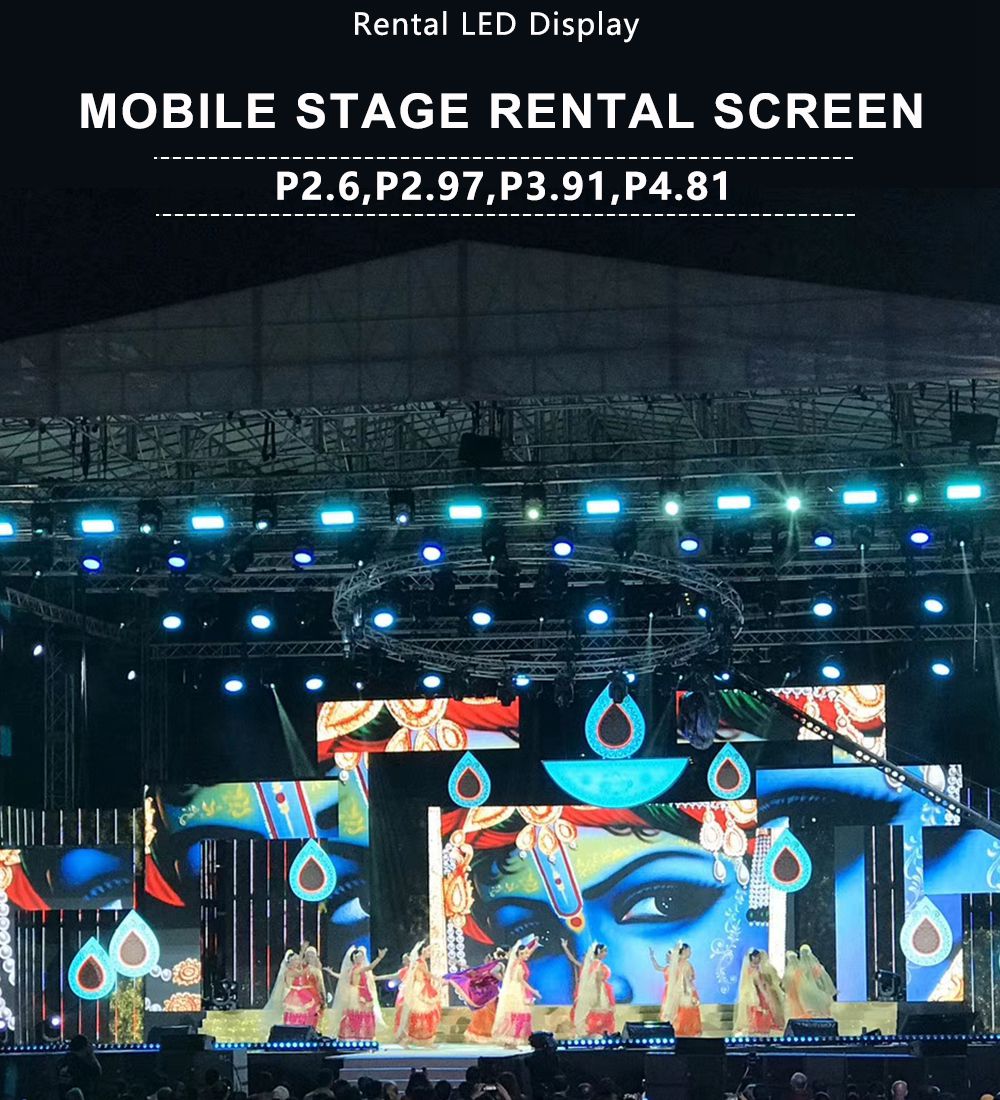 Pantallas de alquiler para bodas, conferencias, conciertos, eventos de lanzamiento y todo tipo de actividades; también se pueden utilizar como soluciones de visualización móvil y soluciones de visualización permanente, como pantallas LED para remolques móviles y pantallas de visualización perimetrales para estadios.