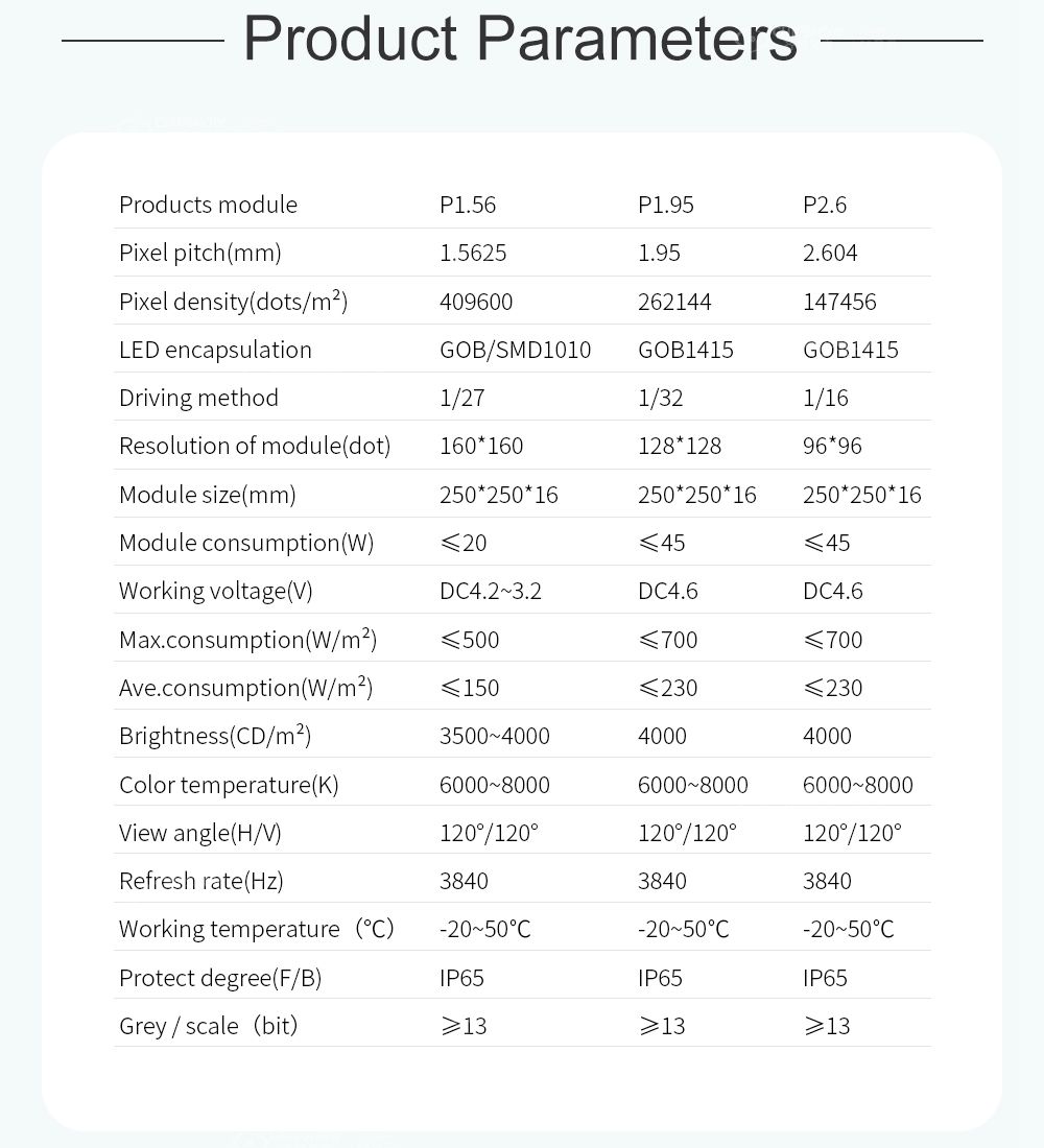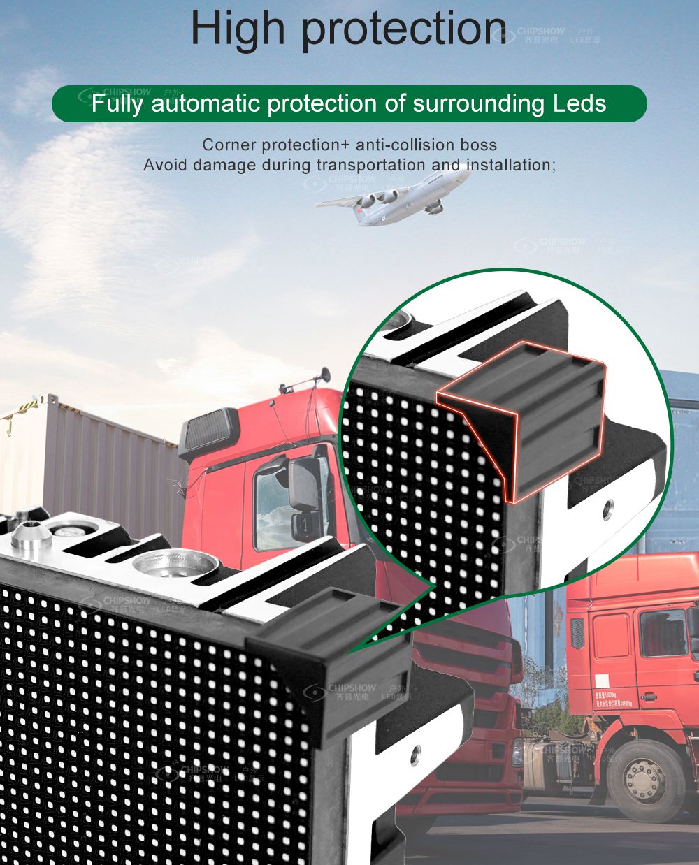 4. Alta protección: Protección de esquinas+jefe anticolisión; Protección totalmente automática de los LED circundantes para evitar daños durante el transporte y la instalación;