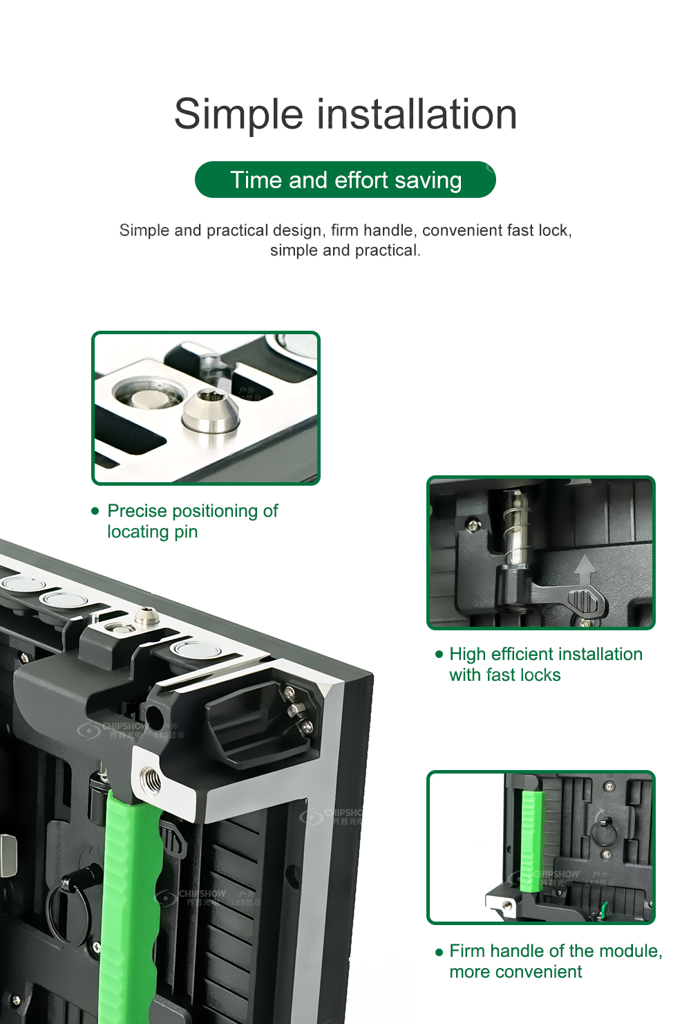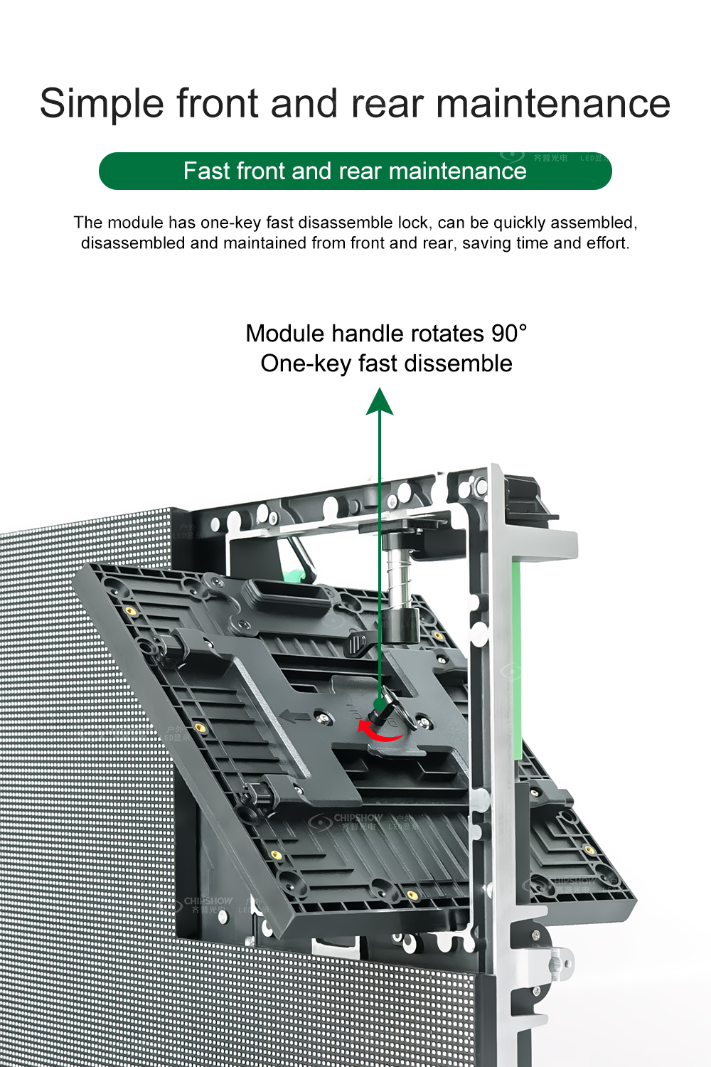 2 Servicio frontal y trasero: las pantallas LED se pueden montar, desmontar y mantener rápidamente tanto desde la parte delantera como desde la trasera;