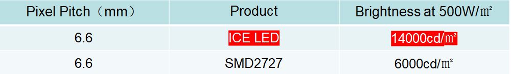 Y aquí hay una comparación de brillo entre el LED P6.6 ICE y el LED P6.6 SMD (SMD2727):