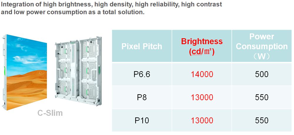 Con la serie C-Slim(ca) se pueden lograr soluciones de visualización P6.6 P8 para exteriores de alta densidad con alta adaptabilidad;