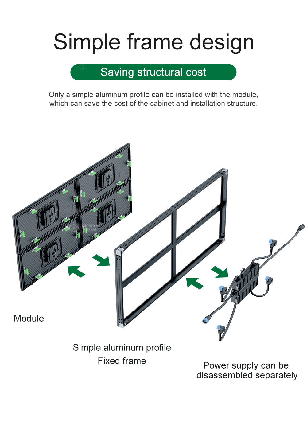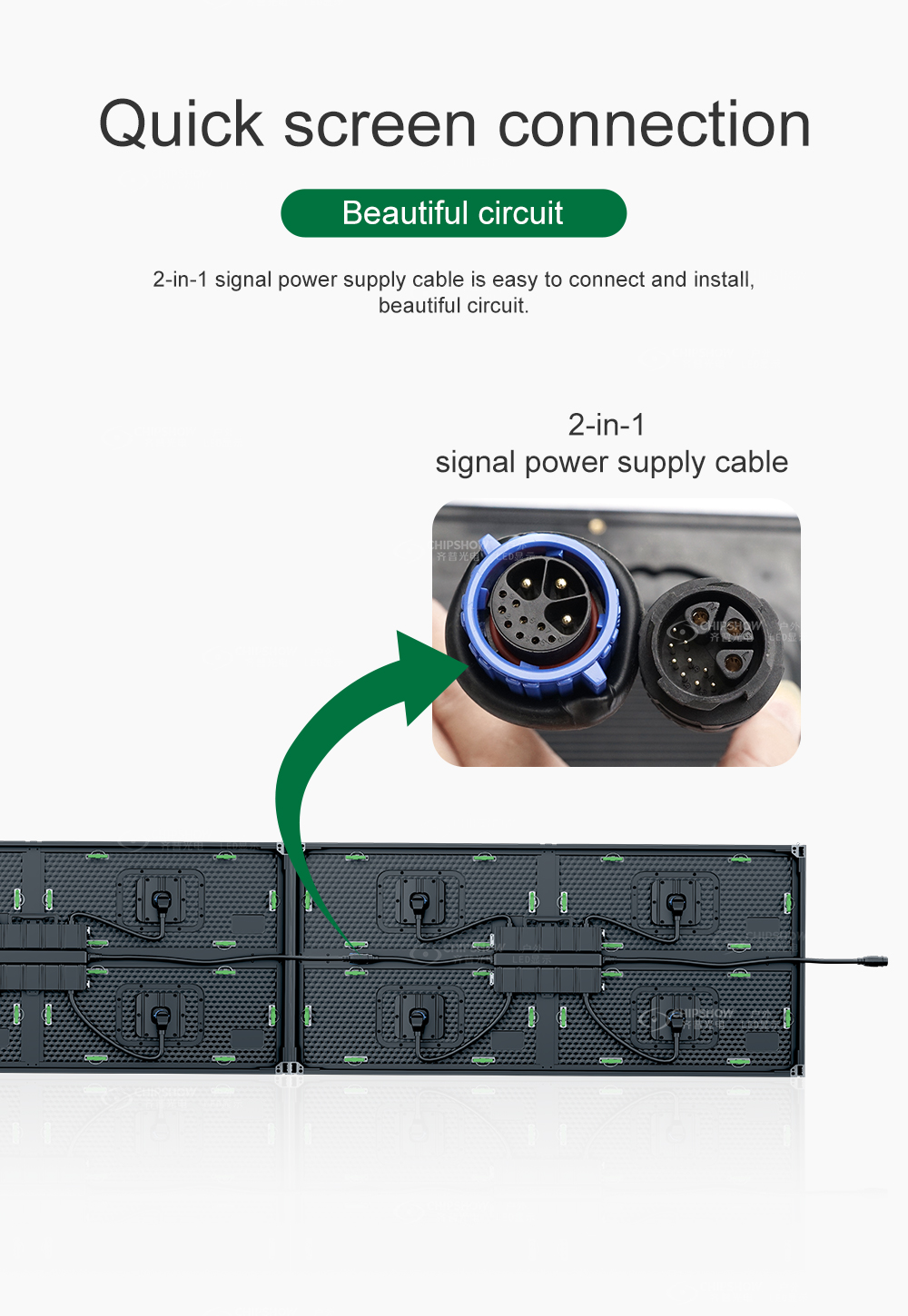 5 Conexión rápida de pantalla: los módulos adoptan cables de alimentación de señal 2 en 1 para mayor comodidad de conexión e instalación rápidas; además, el cableado también es relativamente ordenado;