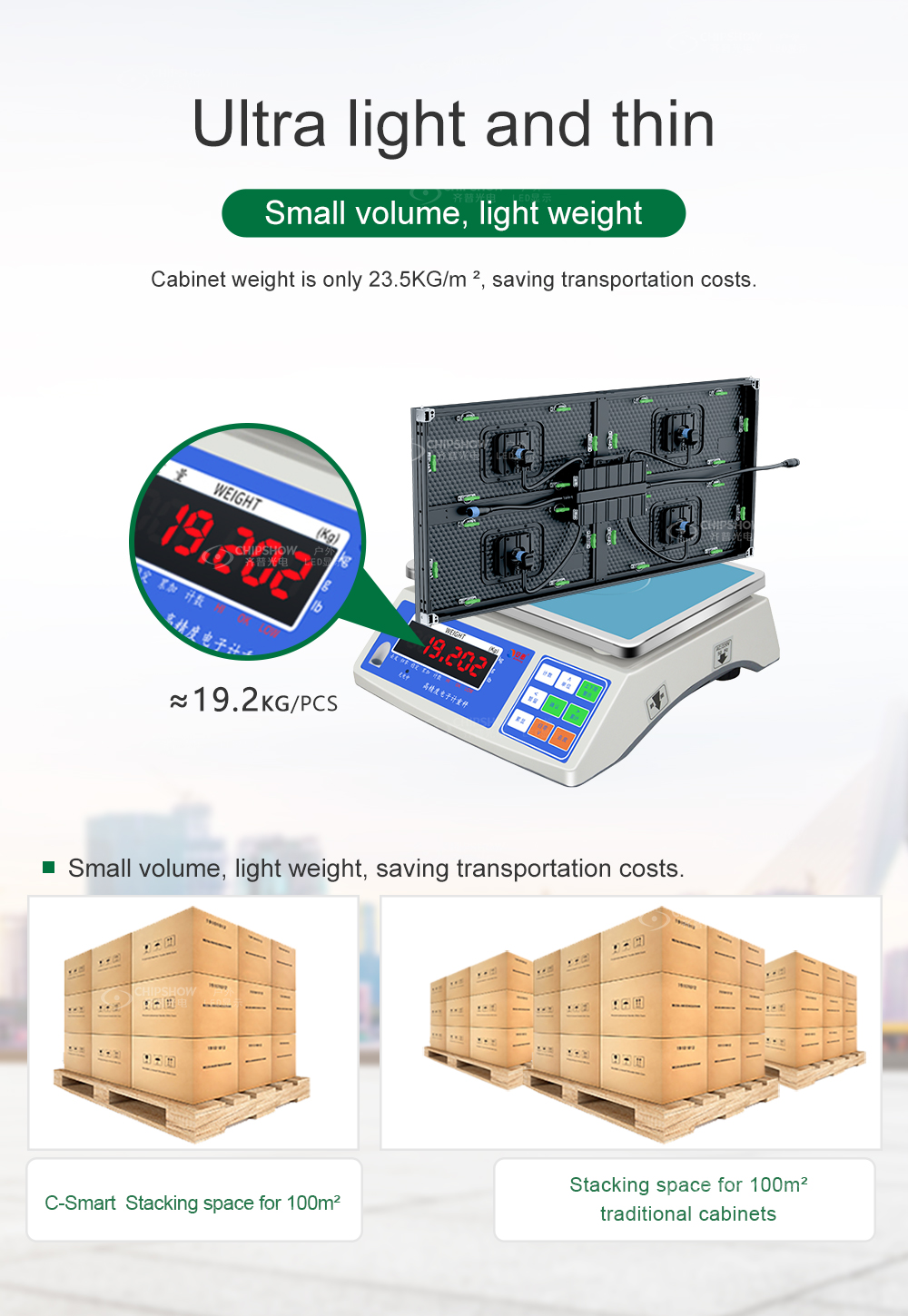 6 Ultraligero, ultradelgado: el peso de un gabinete completo es de solo 23 KG/㎡; por lo tanto, se pueden ahorrar costos de transporte;