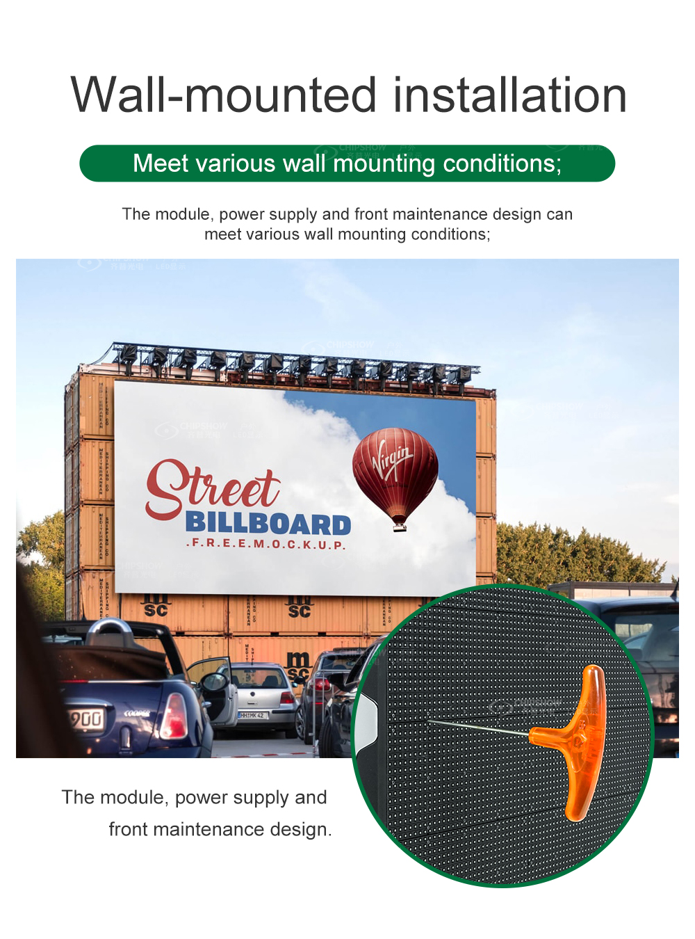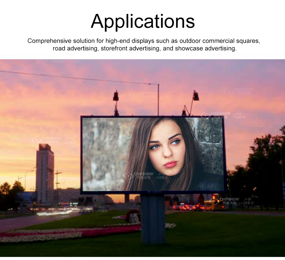 8 Solución de visualización integral: las pantallas son especialmente adecuadas para publicidad al aire libre en diferentes escenas (por ejemplo, centros comerciales, bordes de carreteras, encabezados de puertas y escaparates);