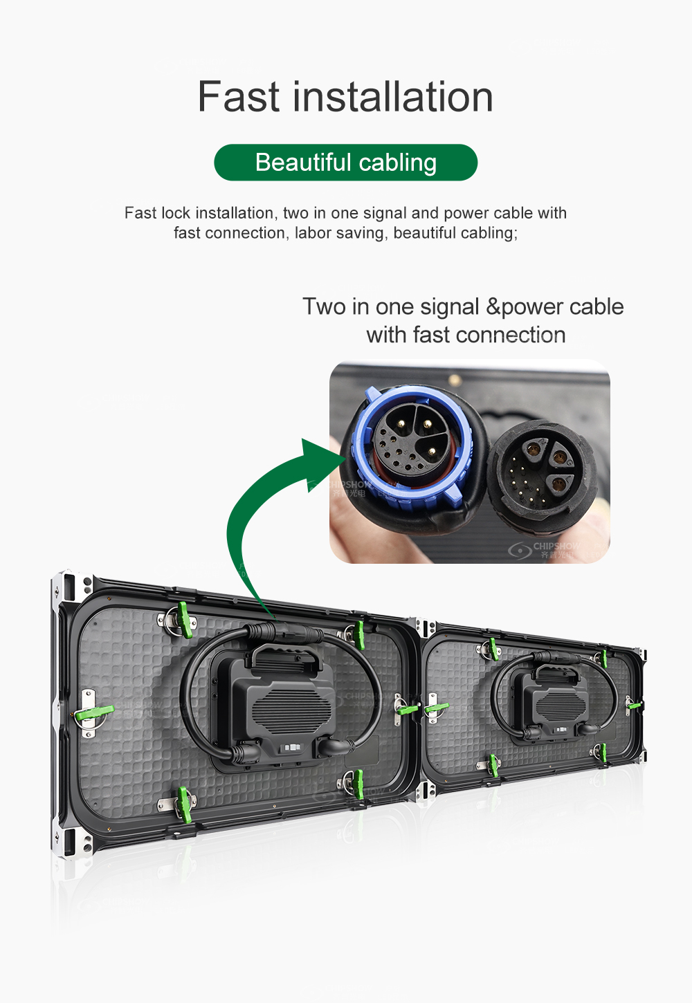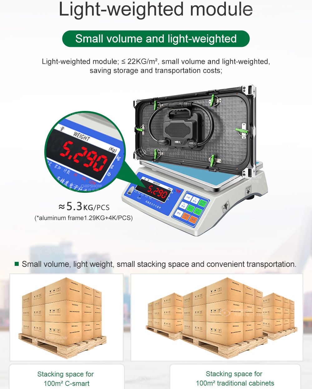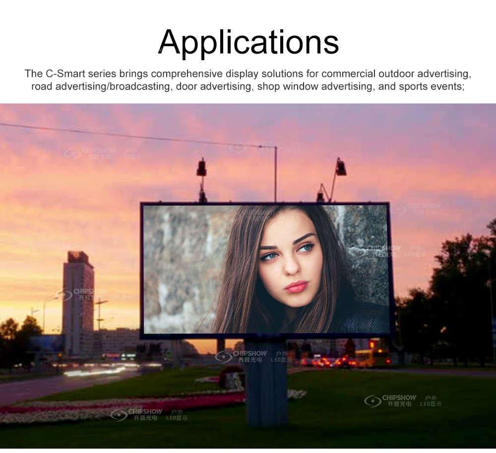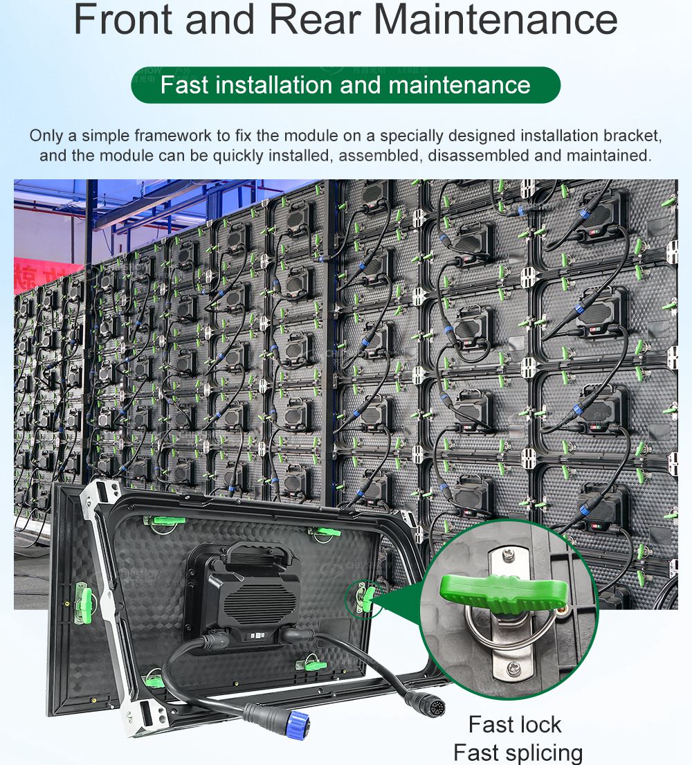 C-Smart es una sencilla pantalla LED integrada delantera y trasera que se puede reparar. Sin diseño de gabinete, solo se necesita un marco simple para sostener los módulos, lo que puede reducir un gran costo de instalación.