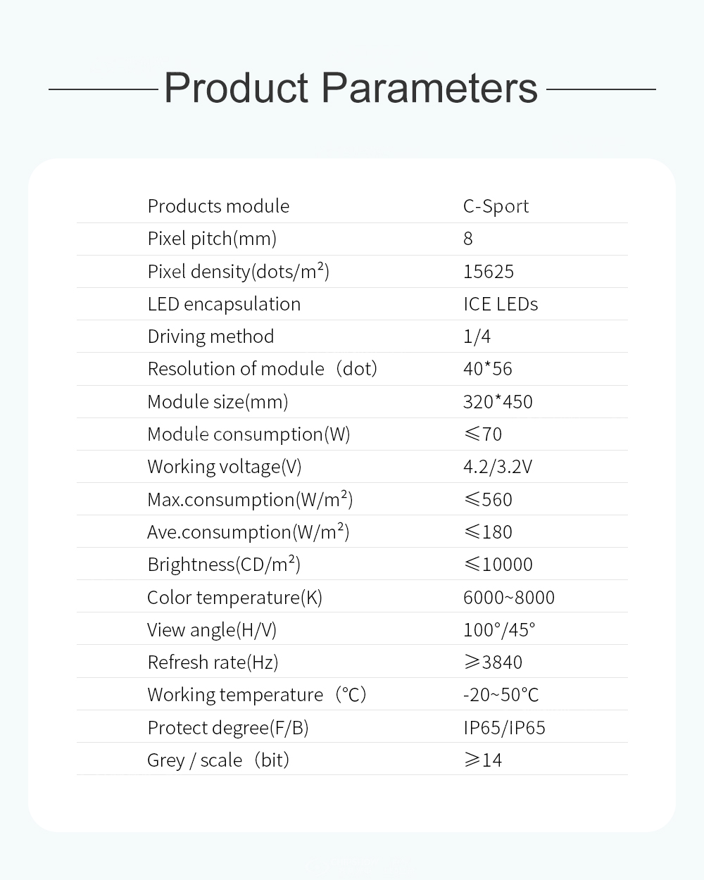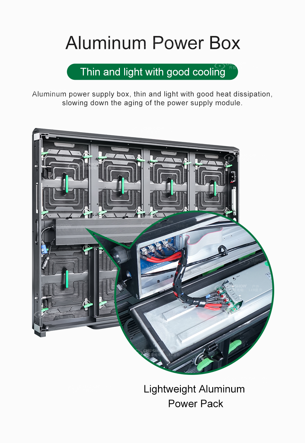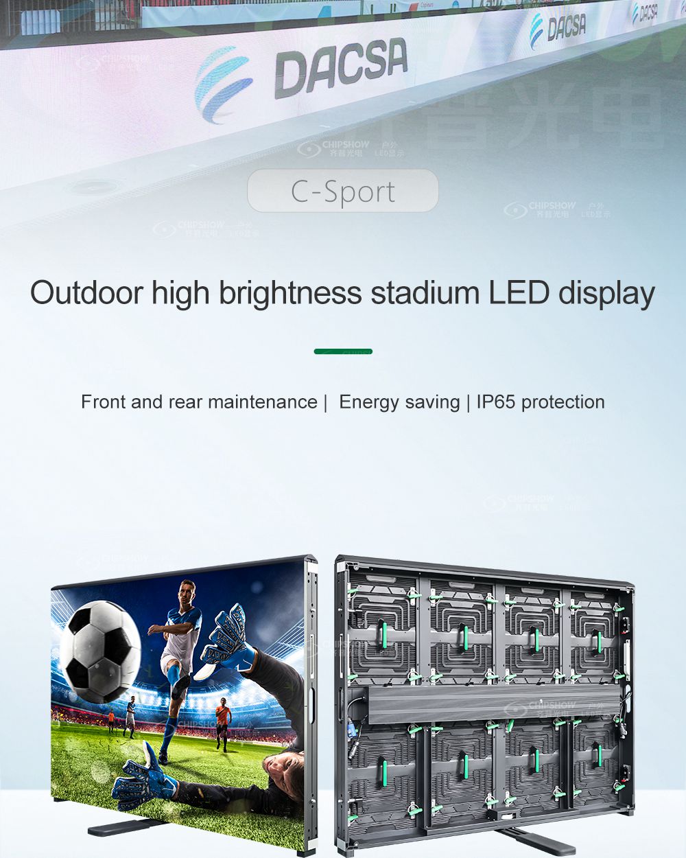 6 En comparación con las pantallas LED convencionales, la serie Chipshow C-Sport ahorra energía: se puede ahorrar aproximadamente 1/3 del consumo de energía; esto reduce en gran medida el costo operativo;