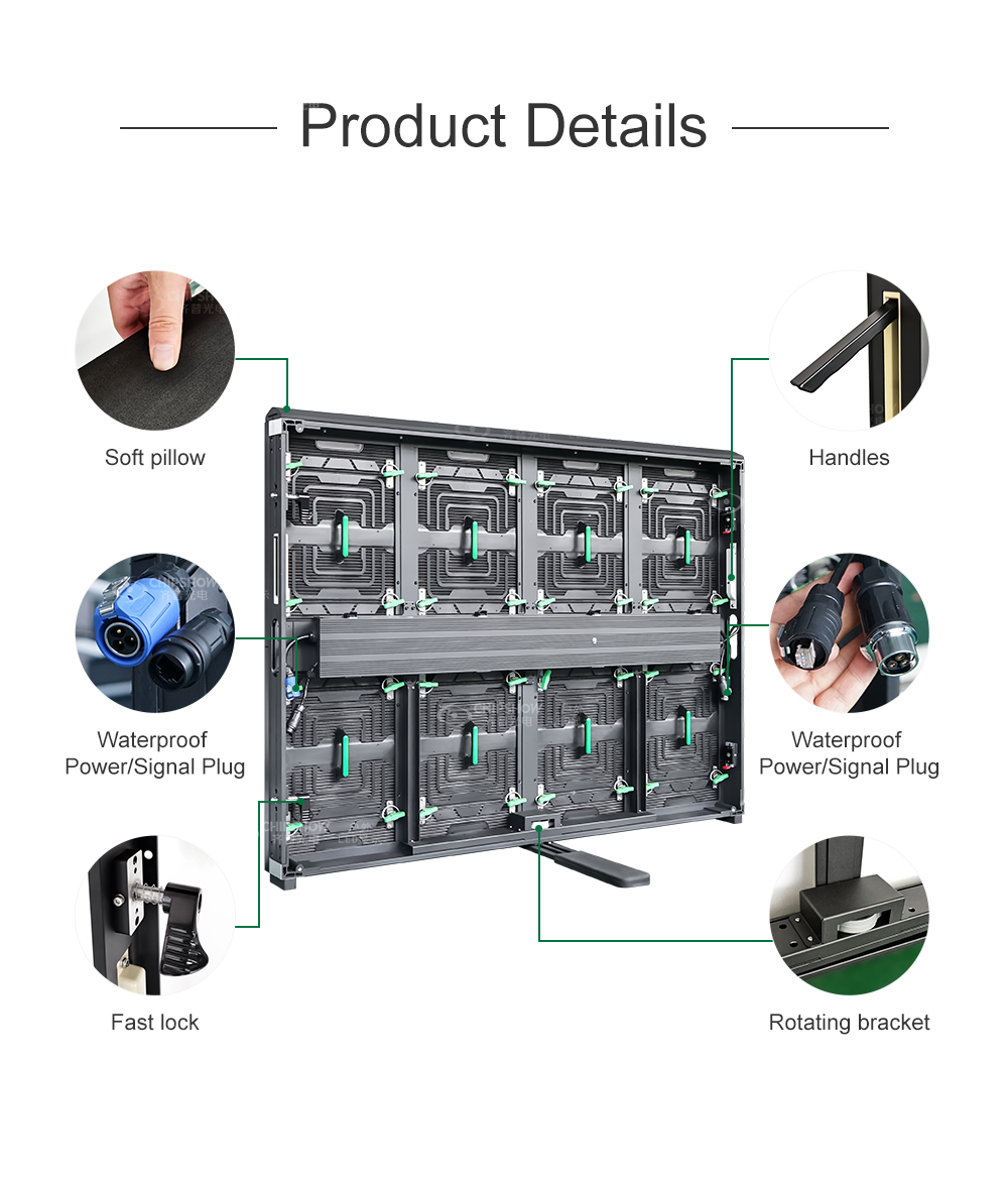 Planitud: gabinete de aluminio fundido a presión de alta resistencia ADC12, que se puede montar y desmontar con frecuencia sin deformarse, buena planitud. Práctico: diseño simple y práctico, mango firme, cómodo cierre rápido, simple y práctico. Se puede montar, desmontar y mantener rápidamente desde la parte delantera y trasera Fuerte y firme: el mango está integrado con los refuerzos horizontales y longitudinales para garantizar que no se deforme en instalaciones fijas y de alquiler. Diseño magnético: el imán entre los gabinetes se coloca e instala con precisión y es muy rentable para la instalación de alquiler. Volumen de ventas global de más de 5000 m². Stock listo y entrega rápida. Aplicado a exhibidores de alquiler como plazas comerciales, eventos de gran escala, escenarios de teatro, exhibiciones y lanzamientos de nuevos productos.