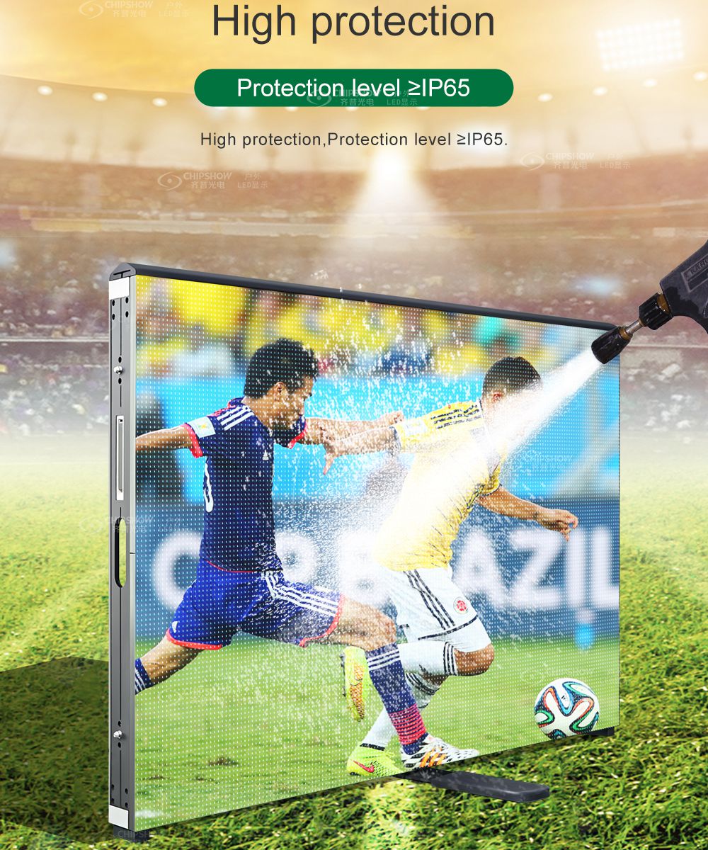 ◙ El gabinete viene con un soporte giratorio de 90° y cierres rápidos izquierdo y derecho para un montaje eficiente de la pantalla LED del estadio. ◙ La pantalla viene con una máscara suave y una almohada de protección, por lo que los atletas y la pantalla LED están perfectamente protegidos. ◙ Caja de alimentación de aluminio, delgada y liviana, buena disipación de calor, retardando el envejecimiento de la potencia y el módulo. ◙ Mantenimiento delantero y trasero del módulo, fácil operación. ◙ Resistente al agua y al polvo, grado de protección ≥ IP65. ◙ Ahorro de energía, aproximadamente 1/3 de ahorro de energía que la pantalla LED tradicional, lo que reduce en gran medida el costo operativo. ◙ Software profesional y admite entrada de fuente de video como DP, HDMD, VGA, SDL, DVD, etc.