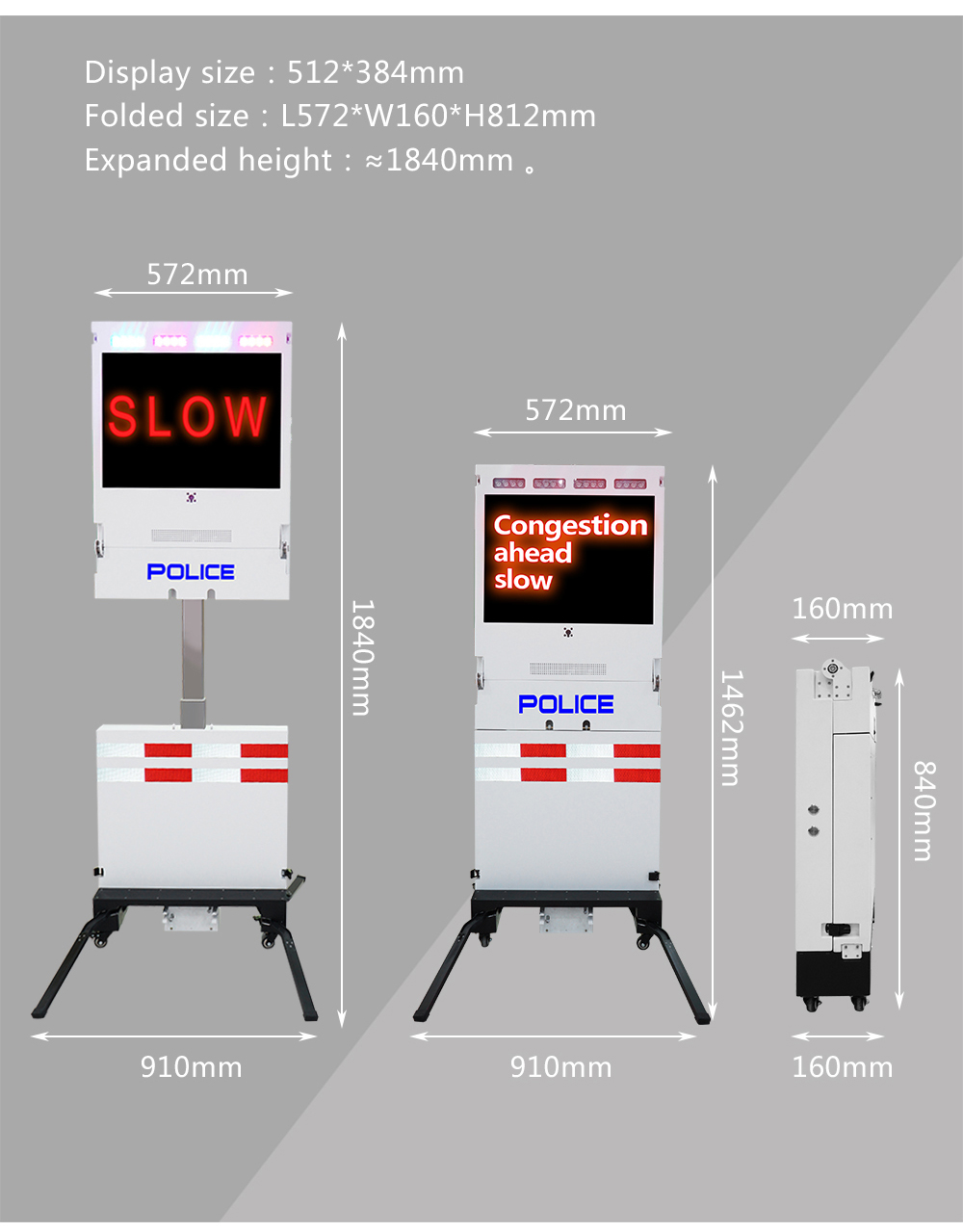Alto brillo y ahorro de energía: fuente de alimentación de bajo voltaje de 2,8/3,8 V, lámpara ICE de alto brillo, ajusta automáticamente el brillo; Pantalla HD: por encima de 210 metros (velocidad del vehículo 120) en modo dinámico y aún puede ser claramente visible a más de 250 metros en distancia estática en tiempo de niebla; Todavía puede mostrar las condiciones de la carretera en alta definición para advertir y guiar a los vehículos para que pasen de manera segura y eficiente; Disipación de calor eficiente: flujo grande Disipación de calor por presión negativa en el gabinete, descarga de calor eficiente, y funcionamiento más estable de la pantalla LED; Carga solar+9.6KWH de gran capacidad batería, que puede encender continuamente la pantalla LED los 365 días del año; Elevación hidráulica+estructura giratoria; El toda la pantalla se sitúa a 1 m de altura y 360° para reproducir información a cualquier altura y ángulo. Estructura de remolque de doble seguridad, seguridad de 10 mm. cadena, anillo de gancho de remolque de 80 niveles con arrastre seguro y conveniente. El conector de señal de 7 núcleos puede controlar EMARK Indicador de remolque certificado, luz de freno, luz de giro y luz lateral en el vehículo completo. Admite posicionamiento GPS; Apoyo U disco/teléfono móvil/tableta/computadora/4G/reproducción WiFi; Vídeo e imagen de soporte. reproducción como MP4/AVI/jpg/; Se utiliza principalmente para pórtico de alta velocidad y guía de tráfico con marco F; Señales de advertencia de seguridad para vehículos de reparación de carreteras, vehículos de limpieza, vehículos sanitarios y otros vehículos de operación vial.