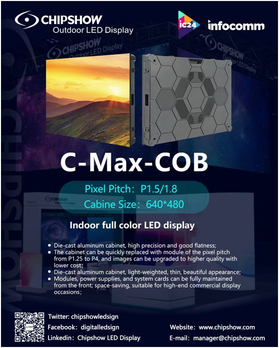 Chipshow LED Display es uno de los principales fabricantes de pantallas LED de China y ha anunciado que exhibirá su gama completa (exteriores, interiores, alquiler, escenarios,COB, Transparent, Sports) soluciones de pantallas LED futuristas en Las Vegas InfoComm IC 2024 del 12 al 14 de junio de 2024. Stand No W3599.