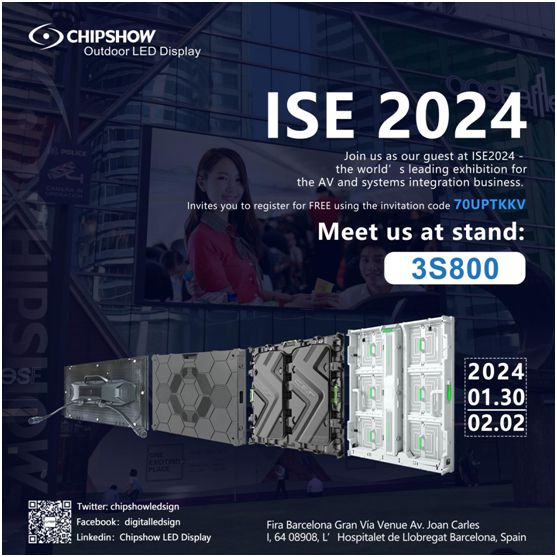 Chipshow desea sinceramente invitar a todos en ISE a visitar el stand número “3S800” y puede utilizar el código de invitación “70UPTKKV” del 30 de enero al 2 de febrero de 2024 en Barcelona, España. El representante de Chipshow siempre estará allí para darle la bienvenida en ese momento y con entusiasmo.esperando reunirse con todos. Chipshow también espera crear un mundo futurista mejor con todos los socios, simpatizantes e inversores de todo el mundo.