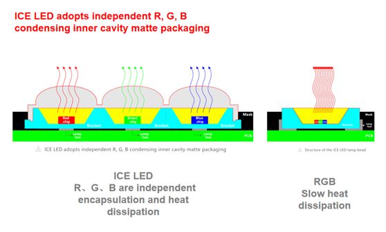 El sistema de disipación de calor también es mejor que el módulo SMD. En la pantalla LED ICE, la disipación de calor es más rápida que en otros módulos de pantalla LED.