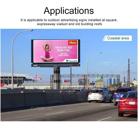Por tanto, C-Slim es una pantalla LED especialmente diseñada para uso en exteriores. Es muy adecuado para mamparas de tráfico o mamparas publicitarias. Los siguientes son algunos escenarios de instalación.